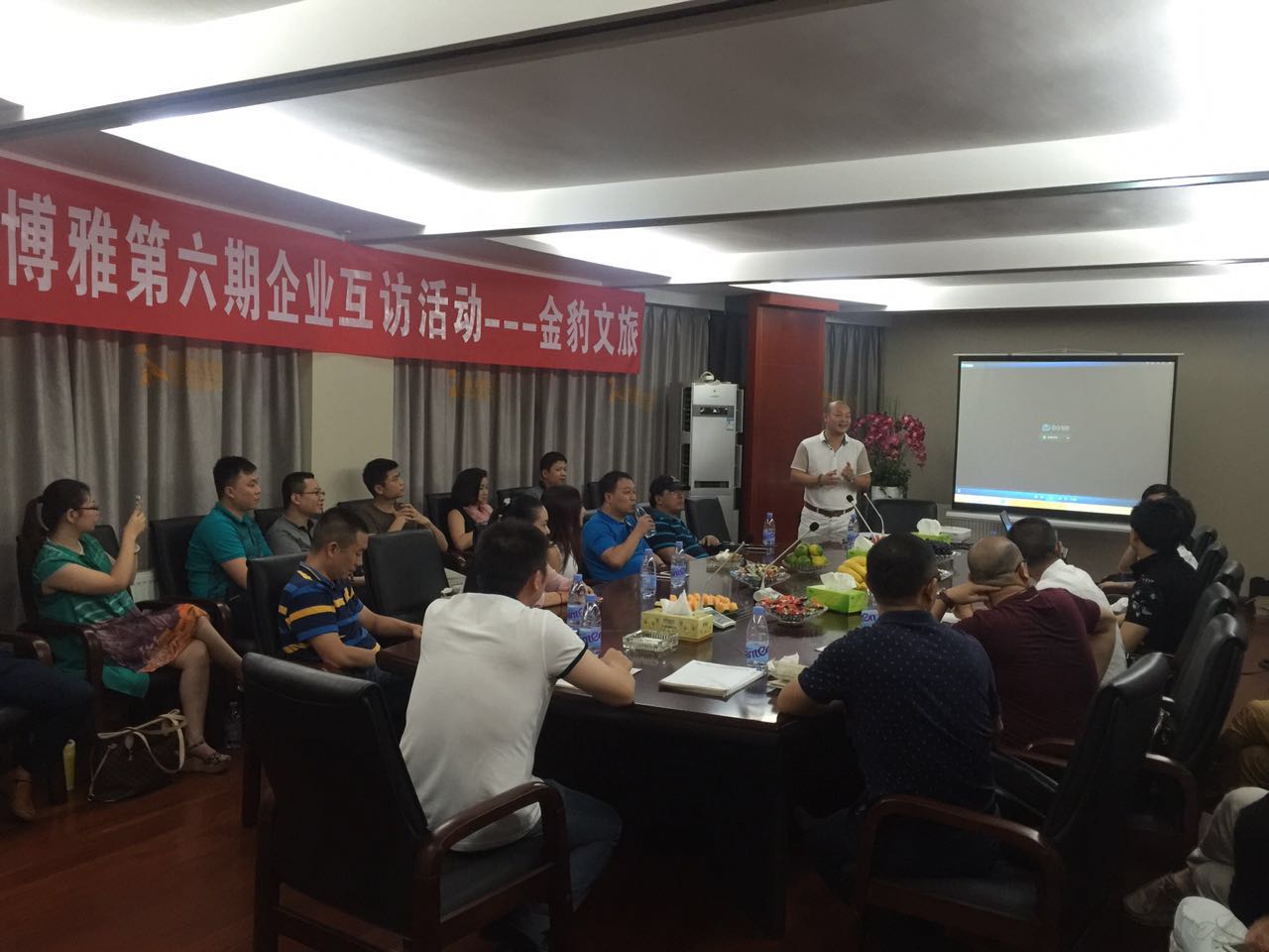 8月12日,北大博雅总裁班的同学以及湖南优秀的企业家共三十余人,来到铂金大酒店,参观走访了我会副会长夏新的企业——湖南金豹文旅传媒有限公司,深入了解金豹文旅的运营方式、发展历程和项目。